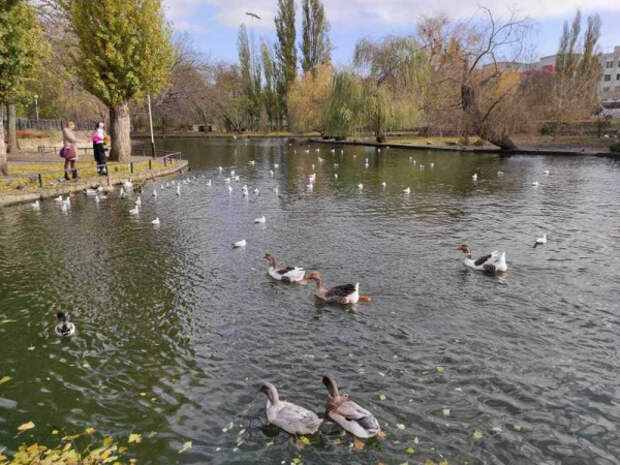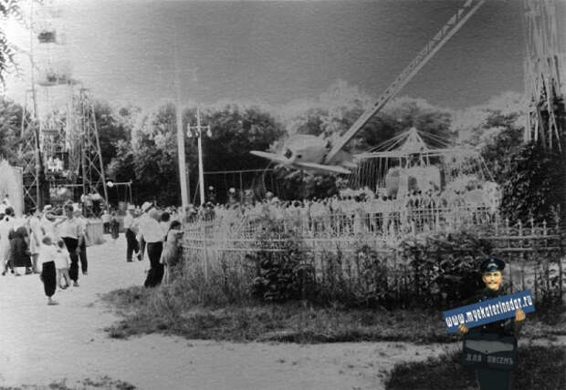 Здесь были и парашютные вышки, и центрифуги, куда пускали только самых смелых и выносливых, а детей — никогда. А всё потому, что большинство аттракционов были близки по своему принципу работы с тренажерами для испытаний космонавтов. Так что катание в Горпарке во времена СССР считалось по большей части экстремальным способом проведения досуга. Были и парные самолеты, правый вращался по горизонтали, левый — по вертикали, и Петля Нестерова, после которых многие выходили шатающейся походкой. Аттракционы в Горпарке. Фото предоставлено проектом "Мой Екатеринодар" Но главным блюдом среди развлечений в Горпарке было, конечно, колесо обозрения. Сравниться с ним могло разве что катание на лодках по пруду в нижней части парка. В то время в пруду плавали не утки, а лебеди: белые и черные. Пока родители наслаждались катанием на лодке, дети могли кататься на различных педальных машинках и повозках, которые тут давали напрокат. Самой популярной была повозка, работавшая по принципу трехколесного велосипеда, спереди у нее была лошадка, а сзади сиденье, так что можно было представлять себя на настоящей боевой колеснице. Колесо обозрения в Горпарке. Фото предоставлено проектом "Мой Екатеринодар" Но кроме аттракционов и различных катаний здесь было чем заняться. В парке находился хороший ресторан кавказской кухни, куда ходили для того, чтобы отметить особо важные события. Это был действительно парк культуры и отдыха: на выходных под сенью деревьев играл духовой оркестр, чье место к концу 70-х годов заняли диск-жокеи с аппаратурой. Желающие могли купить прямо здесь мороженое, а недалеко от оркестра находилась танцевальная площадка. Работала она только летом, но просуществовала очень долго, с начала миллениума превратившись в дискотеку для пенсионеров, которые приходили сюда на танцы по инерции, вспоминать юные годы. Танцы в Городском саду (Горпарке). 2015-й год. Фото "Ясно" Кроме танцевальной площадки в глубине парка был летний театр, правда там всегда было пусто, и никто там не выступал еще со сталинских времен. Впрочем, народ туда особо и не рвался, в парк ходили в первую очередь погулять и покататься, а не смотреть представления. Катание на лодках в Горпарке. Фото предоставлено проектом "Мой Екатеринодар" Каждое лето в Горпарке устанавливали знаменитые цветочные часы, которые стали ежегодной традицией начиная с 60-х годов. По пути к пруду с лебедями было две колонны — у первой находились часы, у второй — путь к водоему. Античные колонны создавали в парке атмосферу Древней Греции, в связи с чем именно около балюстрад очень любили играть дети. При этом сам парк был достаточно нетипичным, относительно представлений современного краснодарца об уличной инфраструктуре. Были ухоженные дорожки, но за ними росли полудикие деревья и растения, среди которых гулять совсем не хотелось, разве что смотреть, как природа живет своей жизнью. В пруд, где все катались на лодках, иногда запускали сазанов, возможно для каких-то городских нужд, но точно это не известно. И дети, и некоторые взрослые, прознав про это, рано утром бегали к пруду ловить рыбу. Клевало тут исключительно, за пару часов можно было наловить пару килограммов. Только сторожи к таких рыбакам относились не благосклонно, и регулярно их гоняли. Если бы в современном Горпарке пруд зарыбили и позволили бы ее