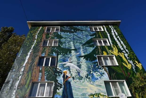 Дома центральной части Майкопа продолжают украшать арт-объекты по мотивам картин известных авторов. Недавно художники завершили работу по созданию мурала на торце дома на ул. Пролетарской, 413. Здесь появилось изображение картины Константина Васильева «Гуси-лебеди».
