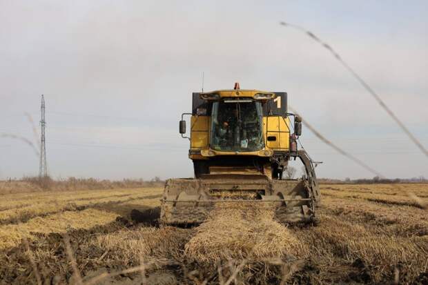 Глава Тахтамукайского района Аскер Савв посетил фермерское хозяйство Газия Сиджаха в пос. Энем, где увидел, как идет уборка риса.