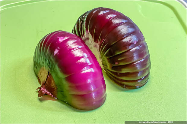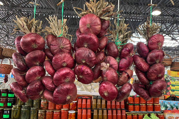 ..Уверен, многие даже не знают, что лук вообще бывает поддельным. Ведь «поддельный лук» даже звучит невероятно глупо! Но … то не шутка, а вполне себе реальность: в Крыму полным-полно поддельного ялтинского лука. Почему именно ялтинского? Потому что, во-первых, он дорогой, а во-вторых, очень популярен среди туристов, многие из которых обязательно покупают вязанку ялтинского лука на трассе или на рынке перед обратной дорогой с отдыха домой. Все дело в том, что ялтинский лук нигде, кроме Крыма больше не растет, и купить его в Омске, Калининграде и и даже Москве практически нереально. Все, кто был в Крыму, наверняка видели вот такие вязанки фиолетового лука. На трассах иногда даже торговцы кроме него, больше ни чего и не продают, настолько это ликвидный товар. Особенно, как выяснилось, если это поддельный ялтинский лук, который продают по цене оригинального! Видите цену? И это на рынке, не трассе, где цена часто доходит аж до 250 руб./кг. И теперь вспомните, сколько стоит обычный лук на рынке. На ценнике не просто так написано «настоящая» Ялта. — А что, бывает и не настоящая? — спрашиваю у торговки. Они смеется мне в ответ: — Конееееееечно! На рынке полным-полно! Но здесь хоть с ценой не «разводят», понимают, что туристы на этот рынок не идёт, а местные тут же раскусят обман.