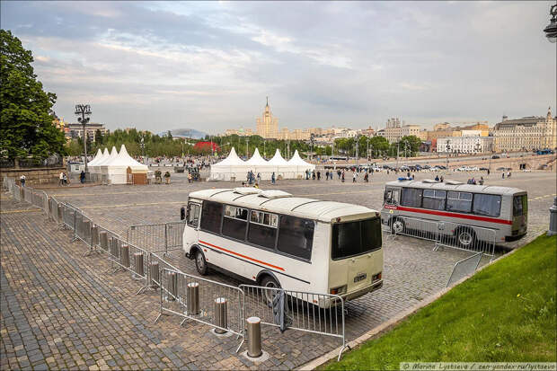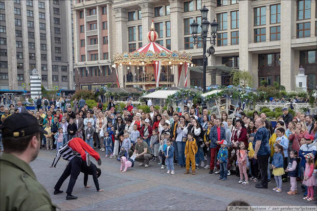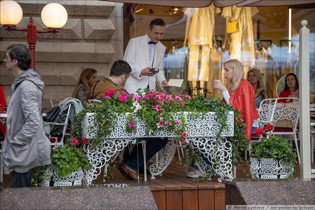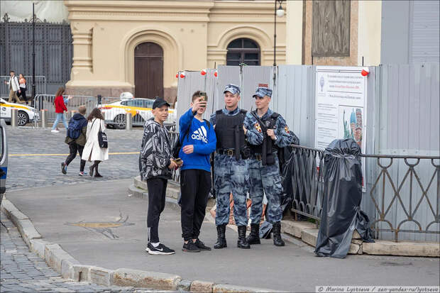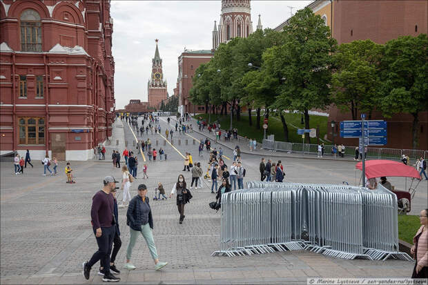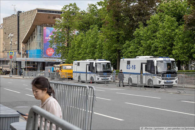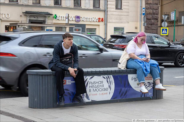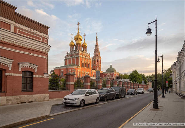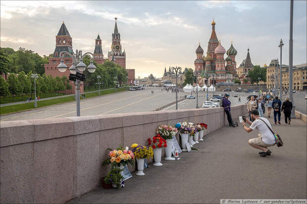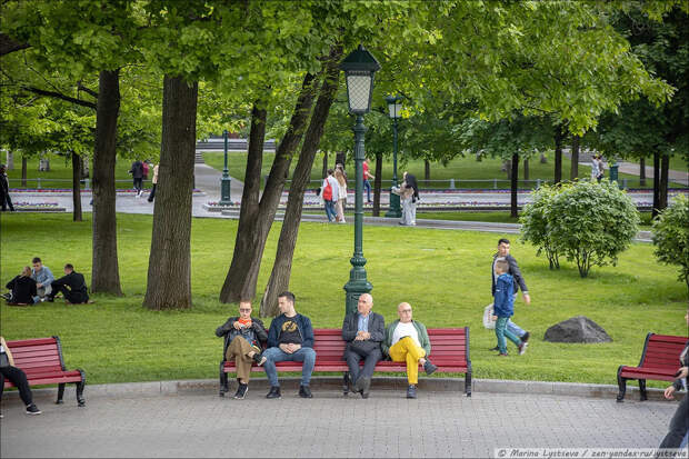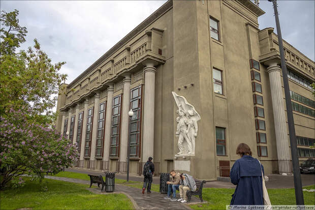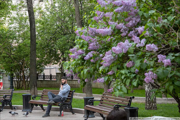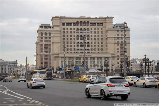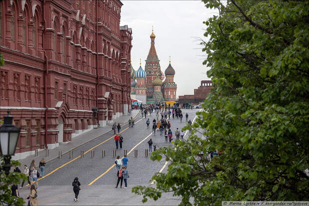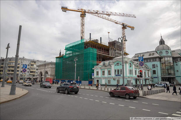 метров, который явно выбивается по высоте из общей застройки: Площадь у Белорусского вокзала полупустая — парковка стоимостью 380 р./час не очень привлекает автомобилистов: На пересечении Ленинградки и ТТК заканчивают отделку очередного «зуба-высотки» — апарт-комплекс Alcon Tower: Переходим 1-ю Тверскую-Ямскую по наземному переходу (ждать 2 минуты) в сторону бизнес-центра около Никольской старообрядческой церкви, которая прекрасно вписалась в современную архитектуру: Храм московской епархии РПЦ чудом сохранился, когда в 30-е годы прошлого века повсеместно сносили церкви. Строительство начали в 1914 году, освятили в 1921. Вид на сити с Лесной улицы: По Тверской решили не идти — чего мы там не видели? Следуем параллельными «огородами» через улицу Александра Невского мимо скульптурной группы, посвящённой писателю Фадееву и «Молодой гвардии»: По пути встречается любопытное выделяющееся и нависающее над улицей здание Национального Общества Нейрорадиологов, построенное в конце 90-х, когда лепили постройки «кто во что горазд» в стиле «как захватить побольше площади»: Впрочем, допускаю, что лет через 20 оно будет смотреться довольно мило: Переходим Садовую-Триумфальную (кольцо) в районе «Дома музыки»: И попадаем в Садово-Триумфальный сквер. Всё цветёт и пахнет… Трое старых «ламповых зубов» около Маяковки внутри Садового кольца: Не знаю, как вам, а я считаю, что «Оружейный» — самая некрасивая московская высотка: Про памятник без комментариев^ На Малой Дмитровке пример дикой лужковской застройки — в этом доме XIX века жил поэт Алексей Плещеев. В 1991 году дом был внесен в список памятников культуры, а в 1997 году власти разрешили приватизировать здание: мэр отдал эту землю Школе телевизионного мастерства Познера. Возле строящегося здания проходили акции протеста, но в итоге старинный дом «реконструировали», оставив лишь стены центрального фасада, который оказался «замурован» в новой постройке: В то же время на площади Курского вокзала висел билборд с портретом Познера: «Я люблю Москву, которой почти больше нет: тихую, старую, со скрипом снега под ногами». Неизвестные приклеили к рекламе подпись: «пи$деть — не мешки ворочать, Володенька. Дом №20 по Малой Дмитровке». Церковь Рождества Пресвятой Богородицы в Путинках 1649 г. постройки является одной из последних крупных шатровых храмов в истории русской архитектуры. На Пушкинской стабильность — автозаки с тёплыми туалетами ждут гостей. Макдачная без опознавательных знаков стала просто куском стекла. А могли бы хоть туалет оставить… Есть чем гордиться… Скамейки на Тверской являют собой бетонный блок, обшитый деревом — такие стали ставить около подземных переходов после того, как на «Славянском бульваре» автобус влетел в переход, передавив кучу народа. Красивое панно в переходе показывает старую Москву. Вся пресса теперь в интернете. Дяденька кормит голубей булкой в Новопушкинском сквере: Возле пафосного ресторана «Турандот»: Бизнес-центр «Вознесенский» в Большом Гнездниковском: Сквер Муслима Магомаева: Англиканский собор Святого Андрея в Вознесенском переулке — единственная англиканская церковь в Москве, построенная в стиле викторианской готики во второй половине XIX в. Богослужения проходят только на английском языке: Собор был освящен в 1885 году в честь святого апостола Андрея, святого пок