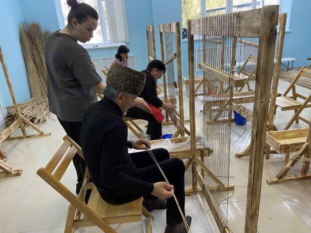 В Центре народной культуры Республики Адыгея прошло четвёртое занятие по изготовлению традиционной адыгской циновки. Участники продолжили осваивать технику плетения циновок на станках.