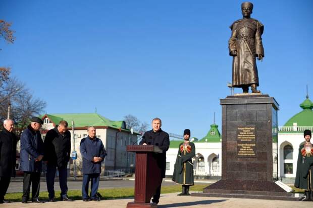 Мурат Кумпилов: В год 100-летия государственности Адыгеи в Майкопе состоялось еще одно знаменательное событие – открытие памятника Шахан-Гирею Хакурате, первому руководителю Адыгейской автономной области. Шахан-Гирей Умарович много сделал для Адыгеи и Кубани. Под его руководством произошли масштабные преобразования в экономике, образовании, медицине и культуре наших регионов. Подготавливались кадры для народного хозяйства, строились промышленные и социальные объекты.