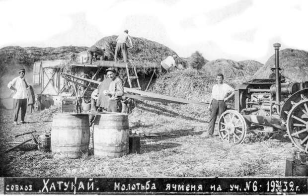 Совхоз "Хатукай". Молотьба ячменя на участке №6 31.08.1932г.
